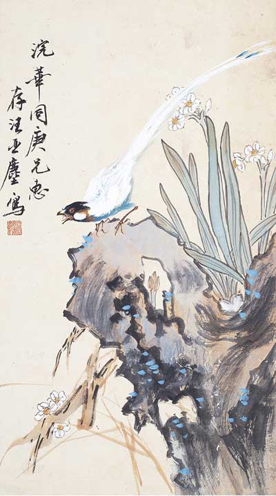 汪亚尘 花鸟立轴
