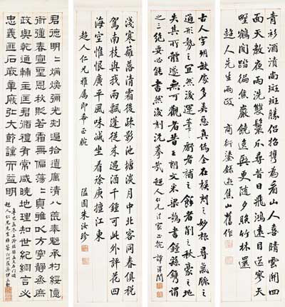 朱汝珍等 书法四条屏