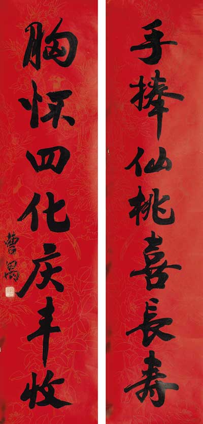 曹禺 书法对联镜心