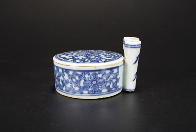 青花花卉笔插