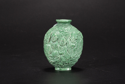 绿釉雕罗汉烟壶