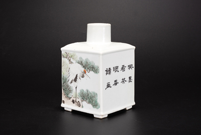 浅绛彩仙鹤纹茶叶罐