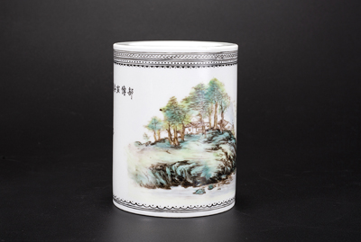 粉彩山水纹笔筒
