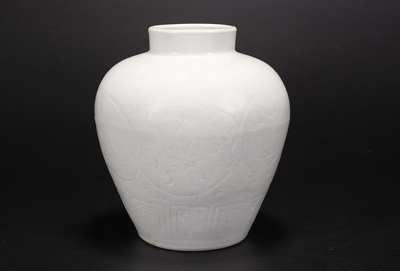 白釉暗刻花卉罐