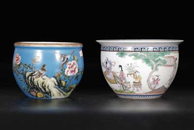 粉彩仕女花盆、花鸟缸