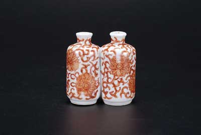 矾红缠枝莲双联烟壶