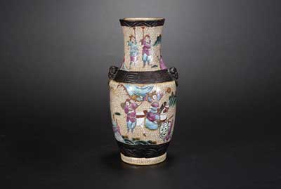 哥釉粉彩人物瓶